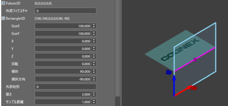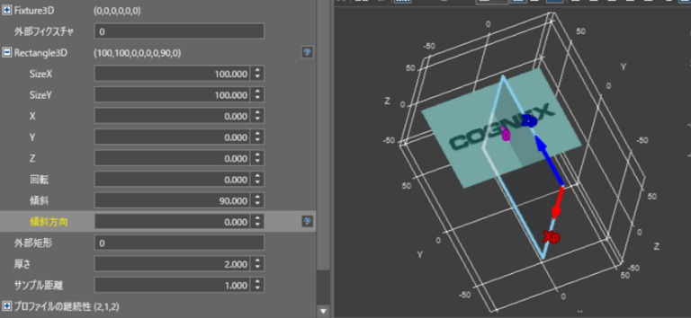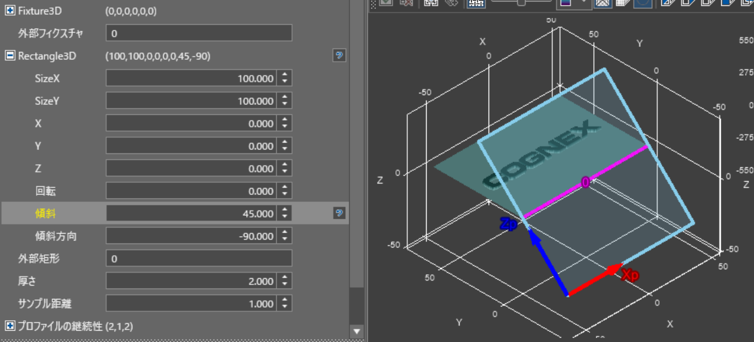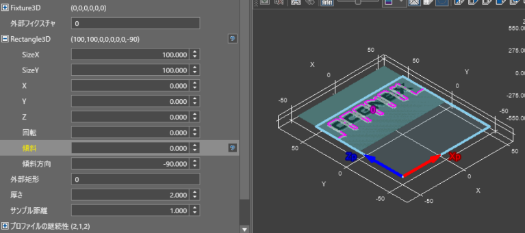 【図4】では傾斜を90度とし、傾斜方向を【図3】の-90度から0度に変更した状態である。