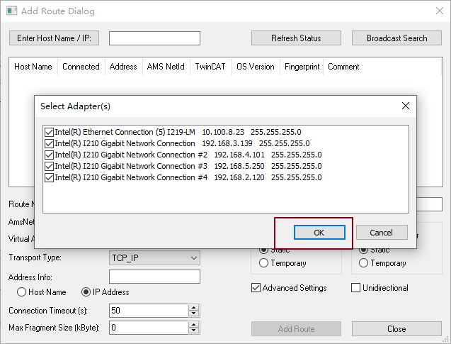 Set IP address and port of In-Sight camera as follows then click “Select” button.
